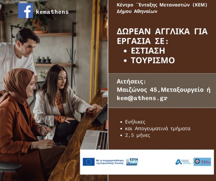 Τα εντατικά  μαθήματα Αγγλικών στο Κέντρο Ένταξης Μεταναστών (ΚΕΜ) του Δήμου Αθηναίων απευθύνονται σε μετανάστες και πρόσφυγες που είτε επιθυμούν να βρουν πιο εύκολα εργασία στον τομέα της εστίασης ή του τουρισμού είτε να βρουν μια καλύτερη θέση εργασίας.