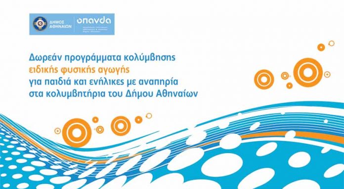 Για μία ακόμη χρονιά, ο Δήμος Αθηναίων δίνει τη δυνατότητα σε παιδιά και ενήλικες με αναπηρία να συμμετέχουν στα δωρεάν προγράμματα κολύμβησης ειδικής φυσικής αγωγής, που υλοποιούνται μέσω του Οργανισμού Πολιτισμού, Αθλητισμού και Νεολαίας (ΟΠΑΝΔΑ).