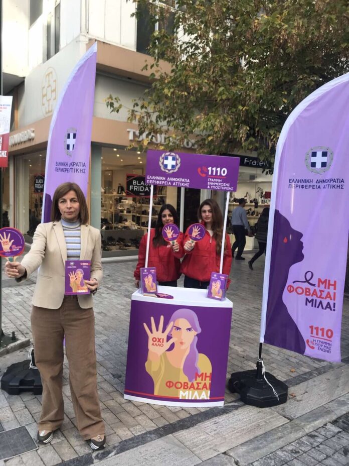 Πενθήμερη ενημερωτική Δράση σε Δήμους της Αττικής με το σύνθημα «ΜΗ ΦΟΒΑΣΑΙ…ΜΙΛΑ», με αφορμή τη σημερινή Διεθνή Ημέρα για την Εξάλειψη της Βίας κατά των Γυναικών πραγματοποιεί η Περιφέρεια Αττικής, κατόπιν σχετικής πρωτοβουλίας του Γ. Πατούλη.