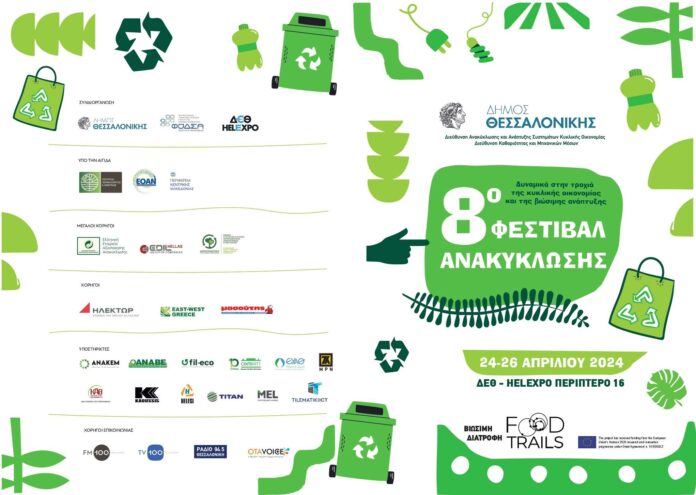 Το 8ο Φεστιβάλ Ανακύκλωσης του Δήμου Θεσσαλονίκης ανοίγει τις πύλες του την Τετάρτη 24 Απριλίου στις 9 το πρωί, στο περίπτερο 16 της Διεθνούς Έκθεσης Θεσσαλονίκης.