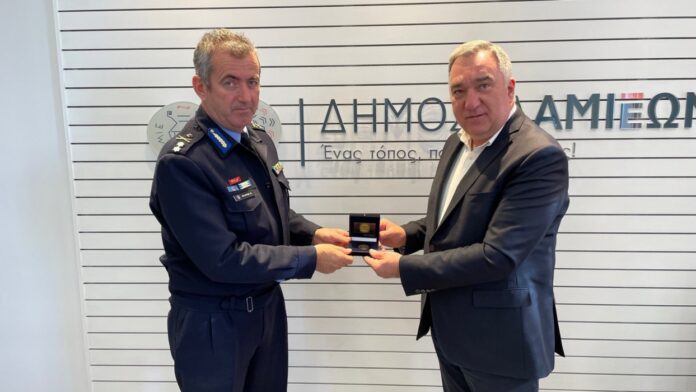 Η εθιμοτυπική συνάντηση του Δημάρχου Λαμιέων Θύμιου Καραΐσκου και του νέου Συντονιστή Πυροσβεστικών Υπηρεσιών Στερεάς Ελλάδας και Θεσσαλίας ολοκληρώθηκε με ανταλλαγή ευχών και δώρων.