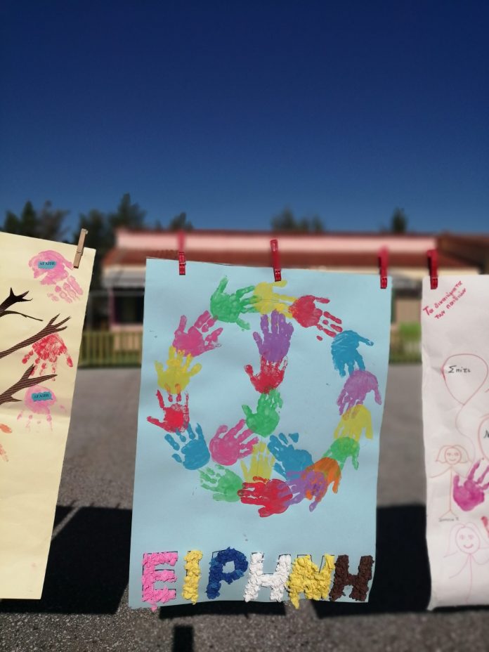 Τα παιδικά τμήματα του Βρεφονηπιακού Σταθμού ανέπτυξαν το θέμα συζητώντας για τα δικαιώματα των παιδιών. Ακολούθησε δράση μουσικοκινητικής αγωγής για την ειρήνη, ενώ έγινε και ομαδική χειροτεχνία όπου σχημάτισαν με το αποτύπωμα της παλάμης τους στο σήμα της ειρήνης!