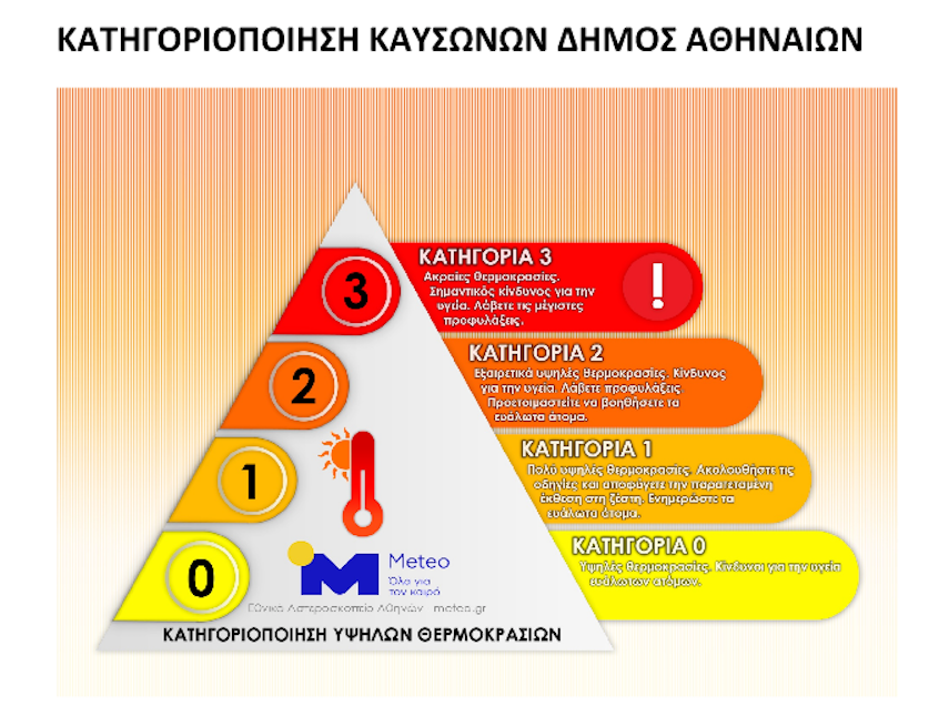 Σημειώνεται ότι μέσω της κατηγοριοποίησης δεν παρέχονται μόνο μετεωρολογικά δεδομένα, αλλά έχει συνυπολογιστεί ο κίνδυνος, τον οποίο μπορεί να διατρέχουν οι κάτοικοι και οι επισκέπτες της Αθήνας από την ακραία ζέστη.