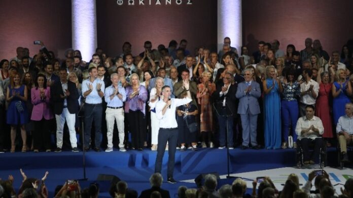 Υπό τους ήχους της μουσικής του Μάνου Χατζιδάκι σε διασκευή Κωνσταντίνου Βήτα – συνδέοντας την καρδιά της Αθήνας με τη σύγχρονη εκδοχή της – ο Κώστας Μπακογιάννης έδωσε το σύνθημα της νίκης: «Καλή μας αρχή! Αυτή η ομάδα, είναι η ομάδα της νίκης!».