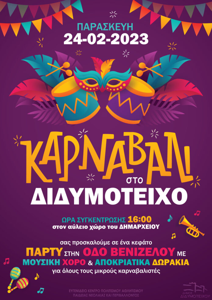 Το Ν.Π.Δ.Δ ΕΥΓΕΝΙΔΕΙΟ του Δήμου Διδυμοτείχου διοργανώνει την Παρασκευή 24/2 καρναβαλικό party , στο πλαίσιο των προγραμματισμένων εκδηλώσεων την περίοδο των Αποκριών.