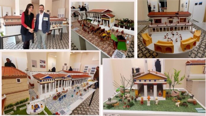 Το Βουλευτήριο, η σκηνή του αρχαίου θεάτρου, οι πύλες του Διός, της Ήρας, του Ερμή, του Διονύσου, της θεάς με το άρμα, η δίοδος των Θεωρείων, τα διοικητικά κτιριακά σύνολα, τα προπύλαια, η αψίδα του Καρακάλα, τα αρχαία τείχη, είναι ορισμένες από τις μακέτες και τα διοράματα που παρουσιάζονται. Όλα κατασκευασμένα από ανακυκλώσιμα υλικά, φιλικά προς το περιβάλλον, όπως ξύλο, χαρτί, πέτρα, ύφασμα και χρωματισμένα με τα μοτίβα εκείνης της εποχής.