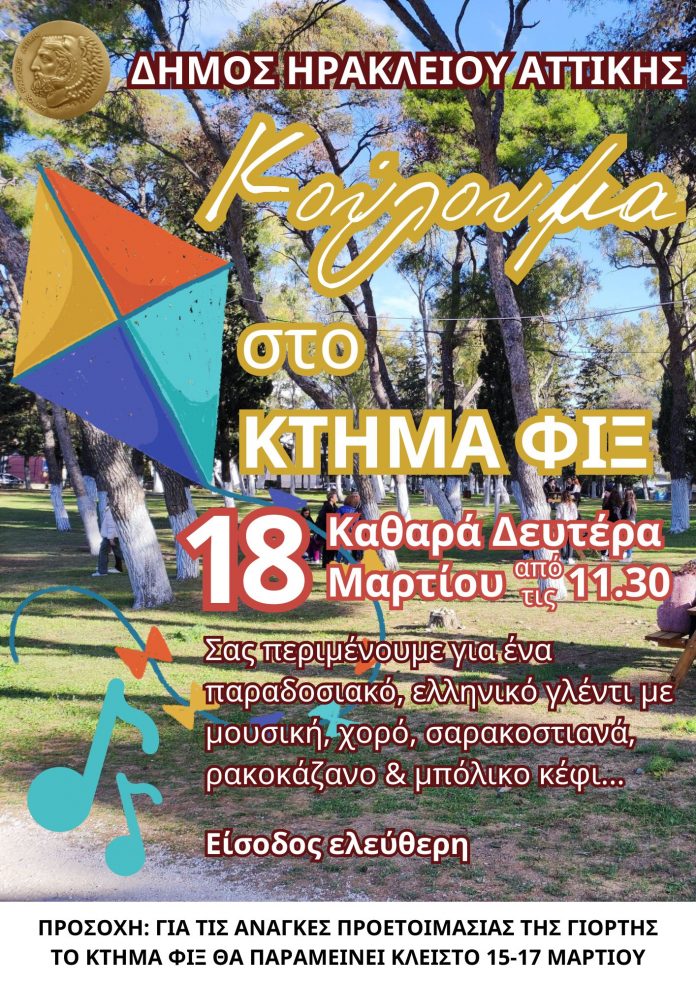 Κούλουμα στο Κτήμα Φιξ – Ο Δήμος Ηρακλείου Αττικής καλεί όλους τους δημότες την Καθαρά Δευτέρα από τις 11.30 να γιορτάσουν μαζί