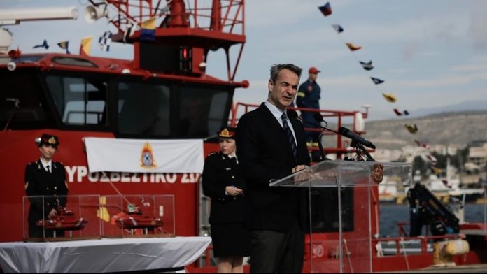 Στην τελετή ονοματοδοσίας και ένταξης δυο πυροσβεστικών πλοίων στο Πυροσβεστικό Σώμα παρευρέθηκε ο πρωθυπουργός Κυριάκος Μητσοτάκης.