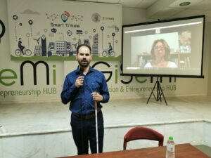 Το σεμινάριο πραγματοποιήθηκε στον Κόμβο Καινοτομίας και Επιχειρηματικότητας της e-trikala ΑΕ, GiSeMi hub, από τη «Με Άλλα Μάτια» αμκε. Ο πρόεδρός της, ο τυφλός Δικηγόρος κ. Βαγγέλης Αυγουλάς στην εισαγωγική του ομιλία, ανέπτυξε στους/στις δεκάδες εργαζόμενους/ες του Δήμου Τρικκαίων τους βασικούς στόχους του σεμιναρίου. Καλωσορίζοντας τους εισηγητές και τα στελέχη του Δήμου Τρικκαίων, η αντιδήμαρχος Διοικητικών και Οικονομικών Υπηρεσιών Σοφία Αλεστά, έδωσε έμφαση ακριβώς στην προσπάθεια του Δήμου, να «αγκαλιάσει» συνολικότερα τους πολίτες με αναπηρία, βελτιώνοντας τις παρεχόμενες υπηρεσίες, δίνοντας έμφαση σε ισότητα στην πράξη.