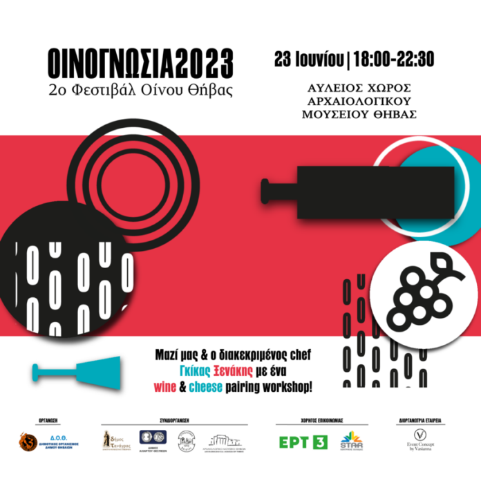 Μετά την περσινή επιτυχία και τη θερμή ανταπόκριση από το κοινό, η Θήβα, πατρίδα του θεού Διονύσου,  φιλοξενεί για δεύτερη χρονιά το Φεστιβάλ Οίνου (Οινογνωσία 2023). Το Φεστιβάλ θα πραγματοποιηθεί την Παρασκευή, 23 Ιουνίου, στον αύλειο χώρο του Αρχαιολογικού Μουσείου Θηβών, έναν χώρο που συνδέει την αρχαιοελληνική παράδοση με τη σύγχρονη ιστορία και με κοινό παρονομαστή τον οίνο.