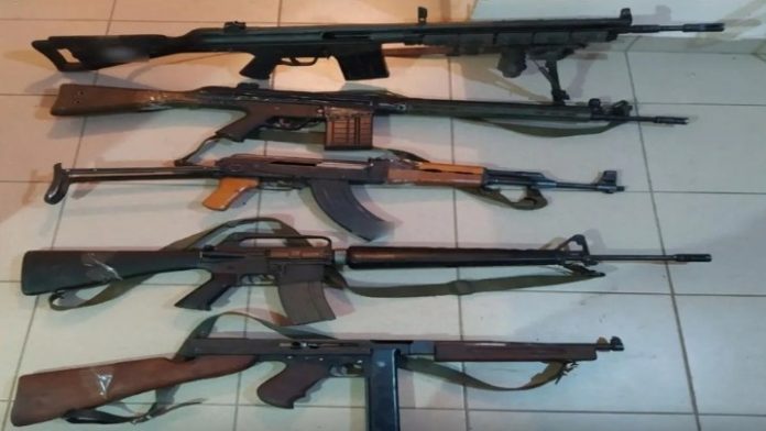 Ολόκληρο οπλοστάσιο διατηρούσαν σε σπίτι στην Φλώρινα ένας 54χρονος και μία 57χρονη, οι οποίοι συνελήφθησαν και οδηγούνται στη Δικαιοσύνη. Πρόκειται για Έλληνες και ερευνάται τόσο η ενδεχόμενη εμπλοκή τους σε αξιόποινες πράξεις όσο και ο ακριβής τρόπος και χρόνος προμήθειας του οπλισμού.