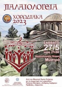 21:00 «Χορωδιακά 2023»: Από το Μουσικό Όμιλο Σπάρτης με τη συμμετοχή της Χορωδίας Παλαιού Φαλήρου, «Ανδρέας Λαζάρου» και της Χορωδίας «Αρμονία» της Πρέβεζας.