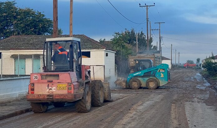 Στο Κιλελέρ καθαρίζονται οι δρόμοι από τα φερτά υλικά κυρίως στην περιοχή μπροστά από το δημοτικό σχολείο και το ιατρείο της κοινότητας.