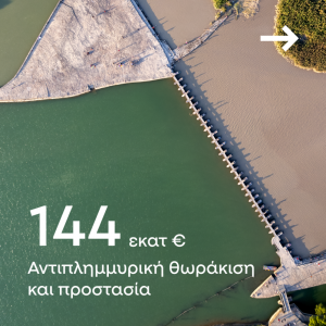 -Ενισχύεται με έργα 144,05 εκατ. ευρώ η αντιπλημμυρική θωράκιση και η προστασία των πολιτών από τις συνέπειες της κλιματικής κρίσης. Σε αυτό το πλαίσιο, προγραμματίζονται αντιπλημμυρικές παρεμβάσεις και κατασκευή δικτύων απορροής ομβρίων υδάτων σε όλους της δήμους της Δυτικής Αττικής, οριοθετήσεις, διευθετήσεις και εντατικοποίηση καθαρισμού ρεμάτων, αλλά και η εκπόνηση ολοκληρωμένων μελετών για έργα ανάσχεσης και απορροής.