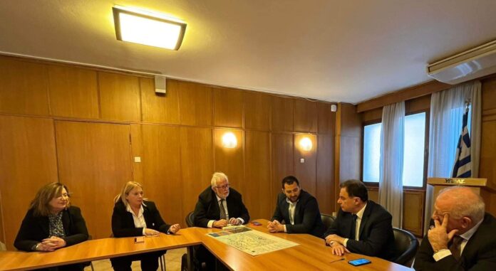 Βοιωτίας Φανή Παπαθωμά, συναντήθηκαν σήμερα, Πέμπτη 12 Ιανουαρίου 2023, μετον Υπουργό Αγροτικής Ανάπτυξης και Τροφίμων Γιώργο Γεωργαντά για τηνυπογραφή της σύμβασης του έργου: «Βελτίωση του αρδευτικού συστήματος τηςπεριοχής “Ι” του αναδασμού Ορχομενού Π.Ε. Βοιωτίας», που έγινε παρουσία του Γεν.Γραμματέα Ενωσιακών Πόρων και Υποδομών του Υπ.Α.Α.Τ Δ. Παπαγιαννίδη, τουΒουλευτή Ν.Δ. Βοιωτίας Ανδρέα Κουτσούμπα και της Δημάρχου Ορχομενού ΒούλαςΚαράλη.