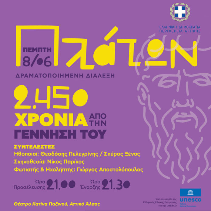 Με τη δραματοποιημένη διάλεξη «Πλάτων» του Θεοδόση Πελεγρίνη ανοίγει η αυλαία για το πολιτιστικό καλοκαίρι της Περιφέρειας Αττικής στο καθιερωμένο ραντεβού με τους πολίτες στο Αττικό Άλσος.