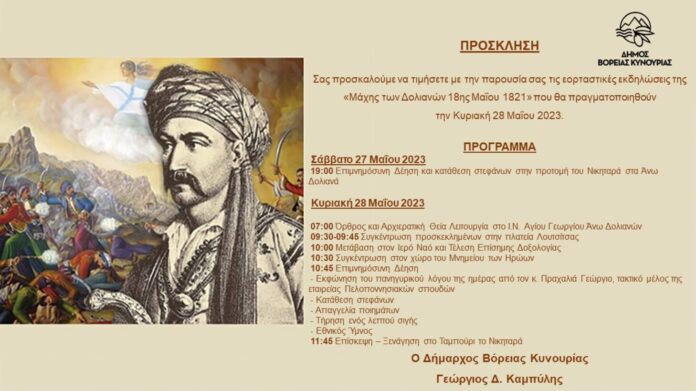 Πρόσκληση και πρόγραμμα εορτασμού για την Ιστορική Μάχη των Δολιανών της 18ης Μαΐου 1821