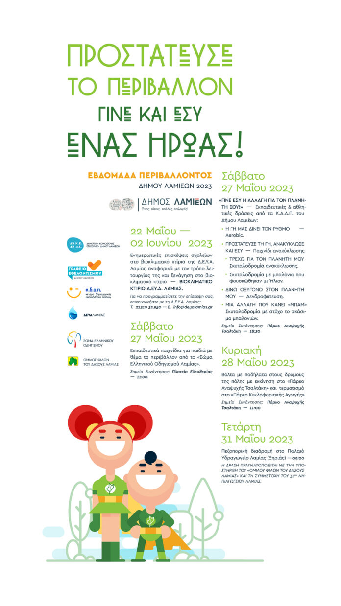 «Προστάτευσε το περιβάλλον, γίνε και εσύ ένας ήρωας!» – Εβδομάδα Περιβάλλοντος Δήμου Λαμιέων 2023, εβδομάδα δράσεων και ευαισθητοποίησης για το περιβάλλον!