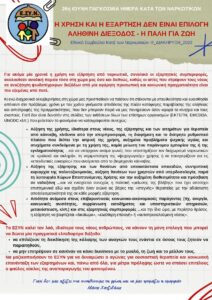 Η ραδιοφωνική εκπομπή «Όσους δεν πήρε η μοναξιά» με τα μέλη του Εθνικού Συμβουλίου κατά των Ναρκωτικών (ΕΣΥΝ), Έλενα Τσούνη και Γιώργο Μαγιάκη (δημοτικός σύμβουλος), οργανώνει αύριο Τρίτη 27 Ιουνίου, από τις 12 το μεσ., έως τις 2 μ.μ., ραδιοφωνικό φεστιβάλ αφιερωμένο, στην Παγκόσμια Ημέρα κατά των Ναρκωτικών.
