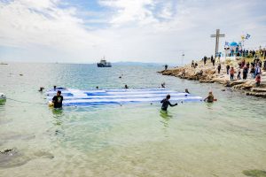 Αισθήματα εθνικής υπερηφάνειας προκάλεσε η  θέα της Γαλανόλευκης στην επιφάνεια της θάλασσας, στον Όρμο της Αφροδίτης στην Πειραϊκή,  την οποία τοποθέτησε  σήμερα,  για ακόμη μια χρονιά, ο Δήμος Πειραιά, τιμώντας με αυτό τον τρόπο τις ηρωικές μάχες των Ελλήνων στη θάλασσα.