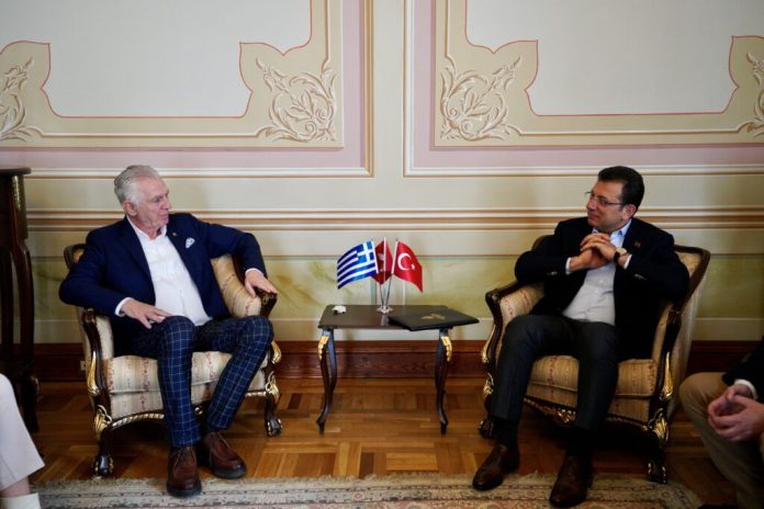 Τον δήμαρχο Περιστερίου Ανδρέα Παχατουρίδη υποδέχθηκε χθες ο δήμαρχος Κωνσταντινούπολης, Εκρέμ Ιμάμογλου, στο γραφείο του στο πάρκο Εμιργκάν, στον Βόσπορο.