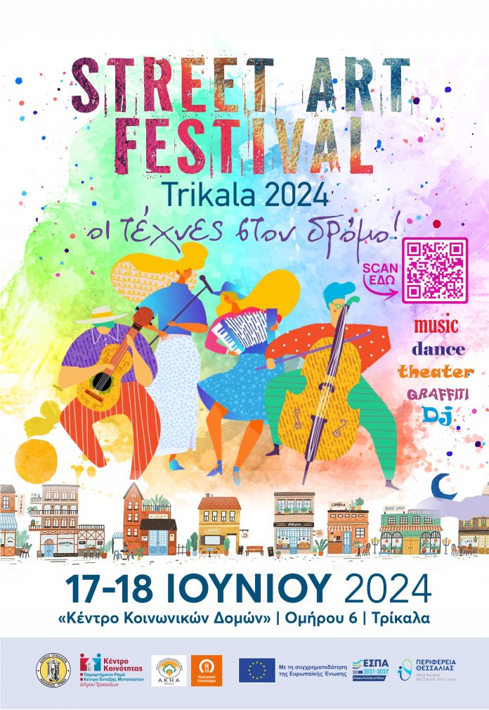 Με αφορμή την ανάδειξη της τέχνης του δρόμου μουσικοί, ηθοποιοί, χορευτές, εικαστικοί- γραφίστες και άλλοι καλλιτέχνες θα συνεργαστούν στο Κέντρο Κοινωνικών Δόμων επί της οδού Ομήρου 6, για να μεταφέρουν την «τέχνη του δρόμου» στους πολίτες, σε μια δράση που διοργανώνεται από το Κέντρο Κοινότητας με τα Παραρτήματα ΚΕΜ &Ρομά, το Ανοιχτό Κέντρο Ημέρας Αστέγων και το Κοινωνικό Εστιατόριο Δήμου Τρικκαίων, στις 17 & 18 Ιουνίου 2024.