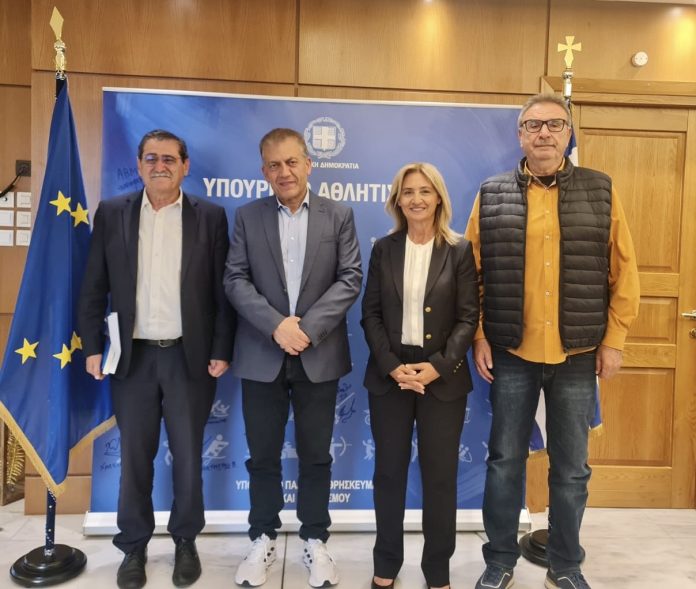 Πραγματοποιήθηκε την Τρίτη 23 Απριλίου η προγραμματισμένη συνάντηση του Δημάρχου Πατρέων, Κώστα Πελετίδη, με τον Αναπληρωτή Υπουργό Αθλητισμού, Γιάννη Βρούτση. Στη συνάντηση συμμετείχε ο Αντιδήμαρχος Αθλητισμού, Περιβάλλοντος, Ενέργειας και Πρασίνου Τάκης Πετρόπουλος και υπηρεσιακά στελέχη του Υπουργείου, μεταξύ των οποίων και η Σύμβουλος του Υπουργού, πατρινή μαραθωνοδρόμος, Μαρία Πολύζου.