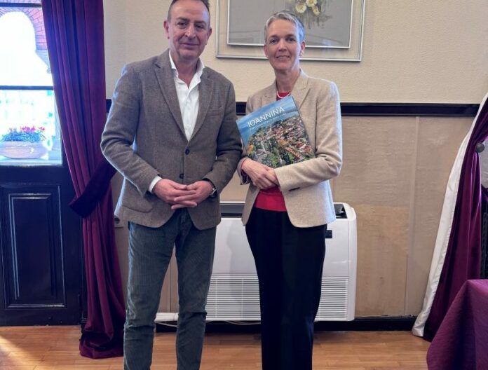 Τη Γενική Πρόξενο της Γερμανίας στη Θεσσαλονίκη, Monika Frank, υποδέχθηκε σήμερα στο γραφείο του ο Δήμαρχος Ιωαννίνων, Θωμάς Μπέγκας. Η συνάντηση πραγματοποιήθηκε σε θερμό κλίμα και επικεντρώθηκε σε θέματα συνεργασίας στους τομείς του πολιτισμού, της εκπαίδευσης, του τουρισμού, καθώς και σε ζητήματα που αφορούν την ανάπτυξη της περιοχής.