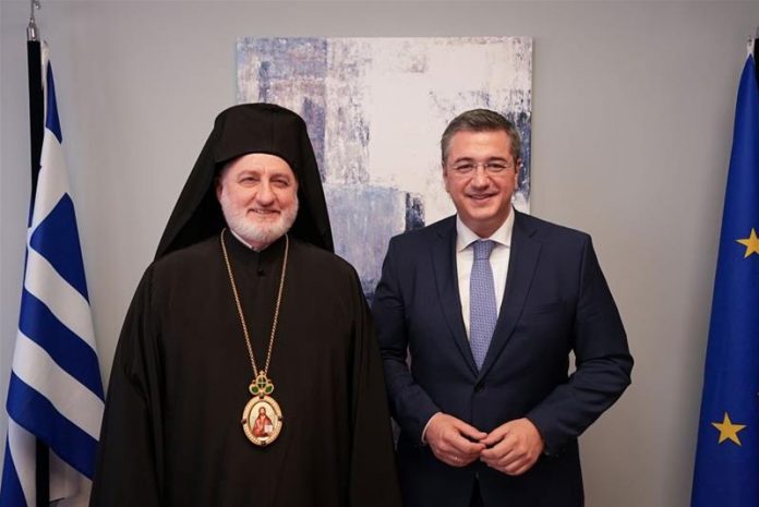 Συνάντηση με τον Αρχιεπίσκοπο Αμερικής κ.κ. Ελπιδοφόρο είχε στο γραφείο του στο Κτίριο Υπηρεσιών της Περιφέρειας Κεντρικής Μακεδονίας στη δυτική Θεσσαλονίκη, ο Περιφερειάρχης Κεντρικής Μακεδονίας Απόστολος Τζιτζικώστας.