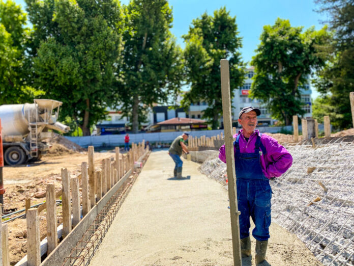 Τις τελευταίες ημέρες τα συνεργεία της εταιρείας που μειοδότησε στον διαγωνισμό («Κοινοπραξία Κατσιάβας Χρ. & ΣΙΑ ΟΕ – Κατσιάβας Χρ. – Νάτσης Κων ΟΕ») ολοκληρώνουν τις σκυροδετήσεις στη μεγάλη «λίμνη» και στον υδάτινο διάδρομο, στα βόρεια της πλατείας.
