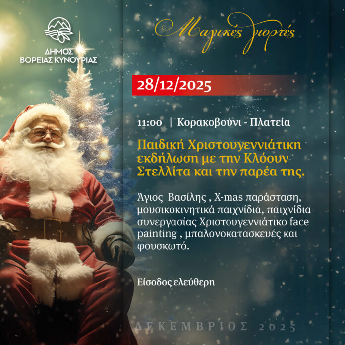 Συνεχίζονται οι παιδικές Χριστουγεννιάτικες εκδηλώσεις του Δήμου Βόρειας Κυνουρίας.