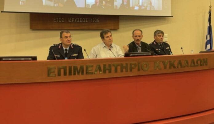 Σύσκεψη εργασίας υπό τον Υπουργό Προστασίας του Πολίτη κ. Μιχάλη Χρυσοχοΐδη, πραγματοποιήθηκε τη Δευτέρα 16 Δεκεμβρίου 2024 στη Σύρο, μετά από πρωτοβουλία του Επιμελητηρίου Κυκλάδων, για θέματα που αφορούν την ασφάλεια στα νησιά, πριν την έναρξη της νέας τουριστικής περιόδου.