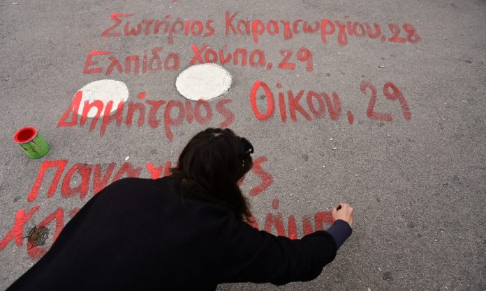 Στο Σύνταγμα, νεαρά παιδιά συγκλόνισαν, όταν με κόκκινη μπογιά έγραψαν στο κέντρο της πλατείας, μπροστά από το μνημείο του Αγνώστου Στρατιώτη, τα ονόματα των 57 θυμάτων της ανείπωτης τραγωδίας που «πάγωσε» το πανελλήνιο.