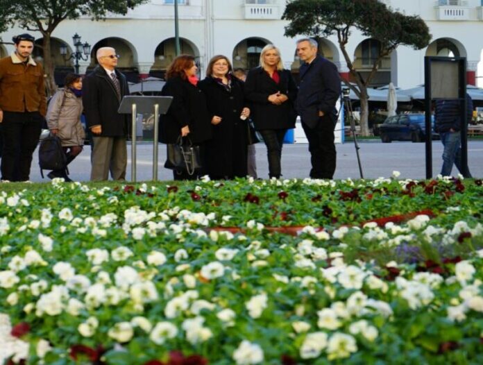 Νωρίτερα το πρωί, ο κ. Ζέρβας βρέθηκε στην πλατεία Αριστοτέλους, εκεί όπου η Αντιδημαρχία Περιβάλλοντος του Δήμου Θεσσαλονίκης προχώρησε σε μια κίνηση γεμάτη συμβολισμούς, δημιουργώντας τη μορφή μιας κακοποιημένης γυναίκας με λουλούδια.