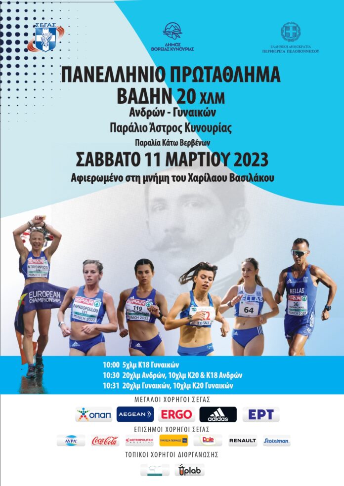 Το Σάββατο 11 Μαρτίου θα φιλοξενηθεί στην παραλία Κάτω Βερβένων το Πανελλήνιο Πρωτάθλημα Βάδην 20χλμ Ανδρών – Γυναικών το οποίο θα είναι αφιερωμένο στη μνήμη του Χαρίλαου Βασιλάκου.