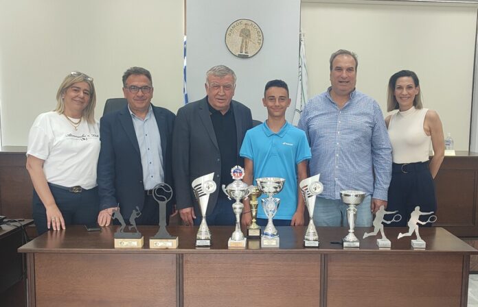 Τον νεαρό τενίστα Άλκη Μιχαλακόπουλο δέχθηκε ο Δήμαρχος Κιλελέρ Θανάσης Νασιακόπουλος και τον συνεχάρη για την πανελλήνια νίκη του στο πρωτάθλημα τένις παιδιών 14 ετών τόσο στο μονό όσο και στο διπλό αλλά και την πρώτη θέση στα μονά και στα διπλά στο πανελλαδικό των 16 ετών.
