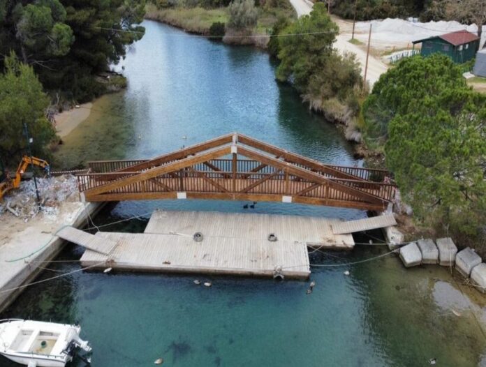 Η νέα πεζογέφυρα στις Κουκουναριές του Δήμου Σκιάθου τοποθετήθηκε με τον Δήμο να υποστηρίζει πως η προηγούμενη είχε φθορές και αυξημένο κίνδυνο ατυχήματος.