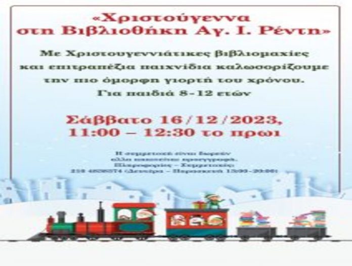 Με βιβλιομαχίες και επιτραπέζια παιχνίδια, η Δημοτική Βιβλιοθήκη Ρέντη καλωσορίζει την πιο όμορφη γιορτή του χρόνου. Η δράση απευθύνεται σε παιδιά ηλικίας 8-12 ετών.