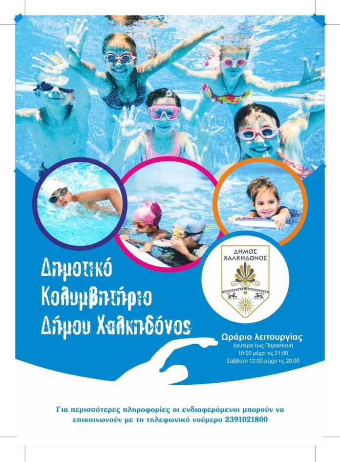 Την ερχόμενη Τρίτη 13 Ιουνίου 2023 ανοίγει τις πύλες του για το κοινό το Δημοτικό Κολυμβητήριο του Δήμου Χαλκηδόνος, το οποίο θα λειτουργεί μέχρι και το Σεπτέμβριο, με τμήματα εκμάθησης κολύμβησης (παιδικά-ενηλίκων), αλλά και με ελεύθερη είσοδο επισκεπτών.