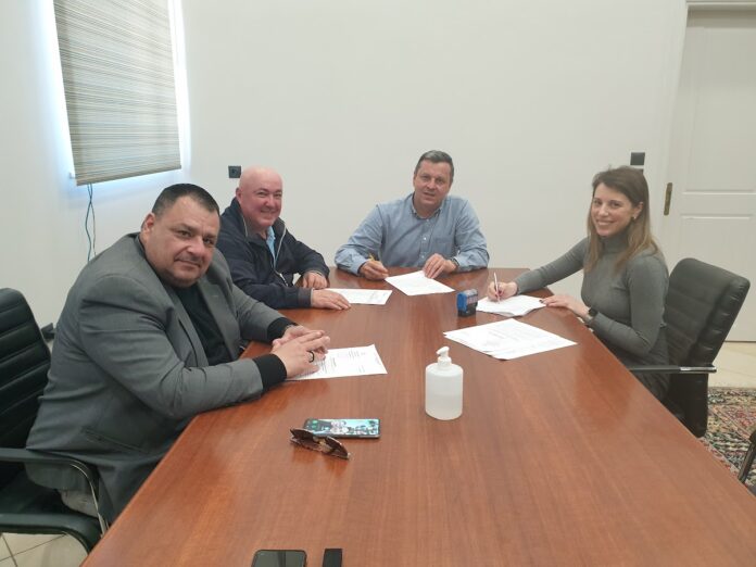 Υπεγράφη η σύμβαση του έργου «Διαμόρφωση χώρου εισόδου κλειστού γυμναστηρίου Άστρους και εγκατάσταση μέσων ενεργητικής πυροπροστασίας», μεταξύ του Δημάρχου Βόρειας Κυνουρίας κ. Γιώργου Καμπύλη και της κα Μαρίας Καραχάλιου εκπροσώπου της αναδόχου εταιρείας.